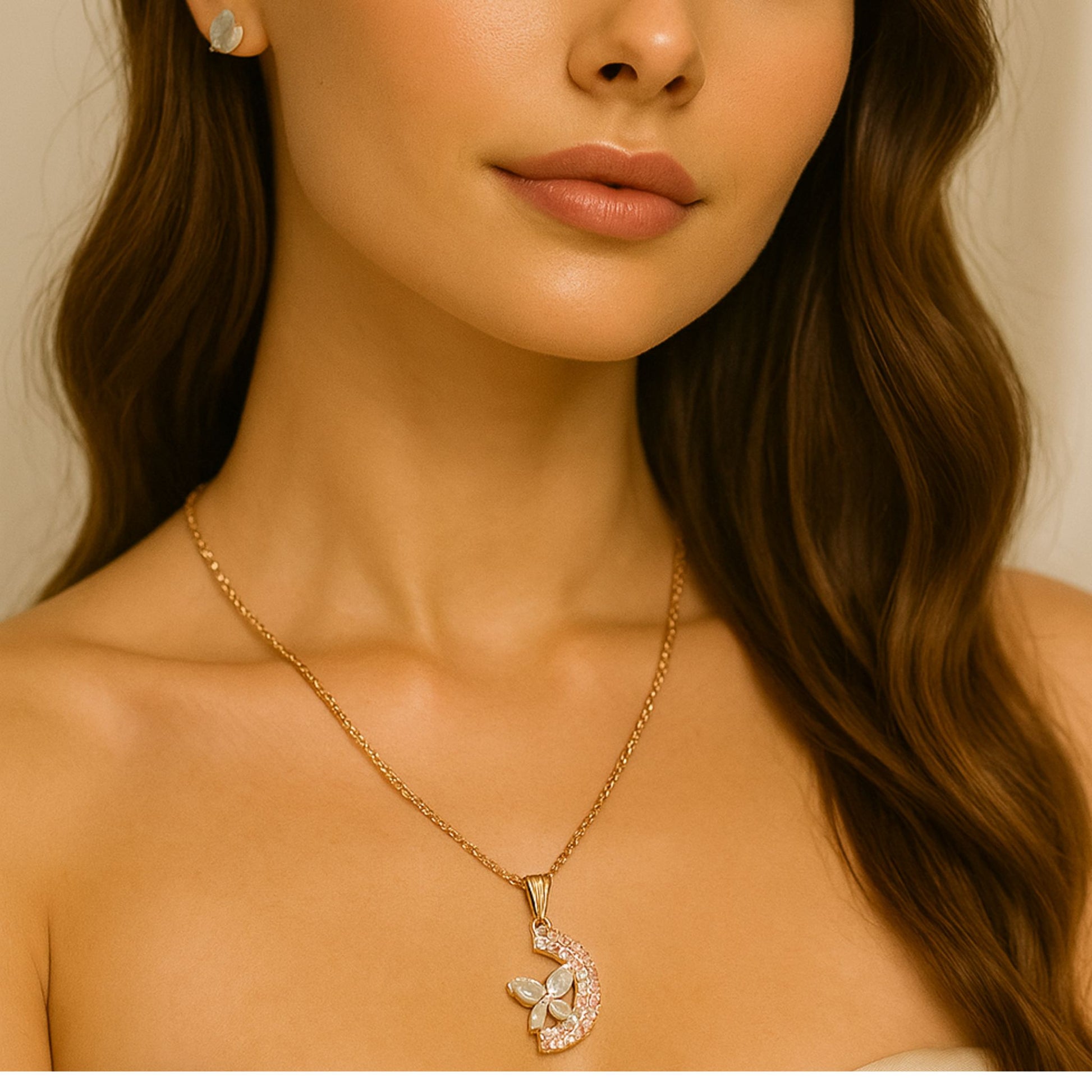Discover the perfect blend of charm and elegance with our beautiful butterfly and crescent necklace set. This exquisitely designed duo is a celebration of delicate, nature-inspired beauty.