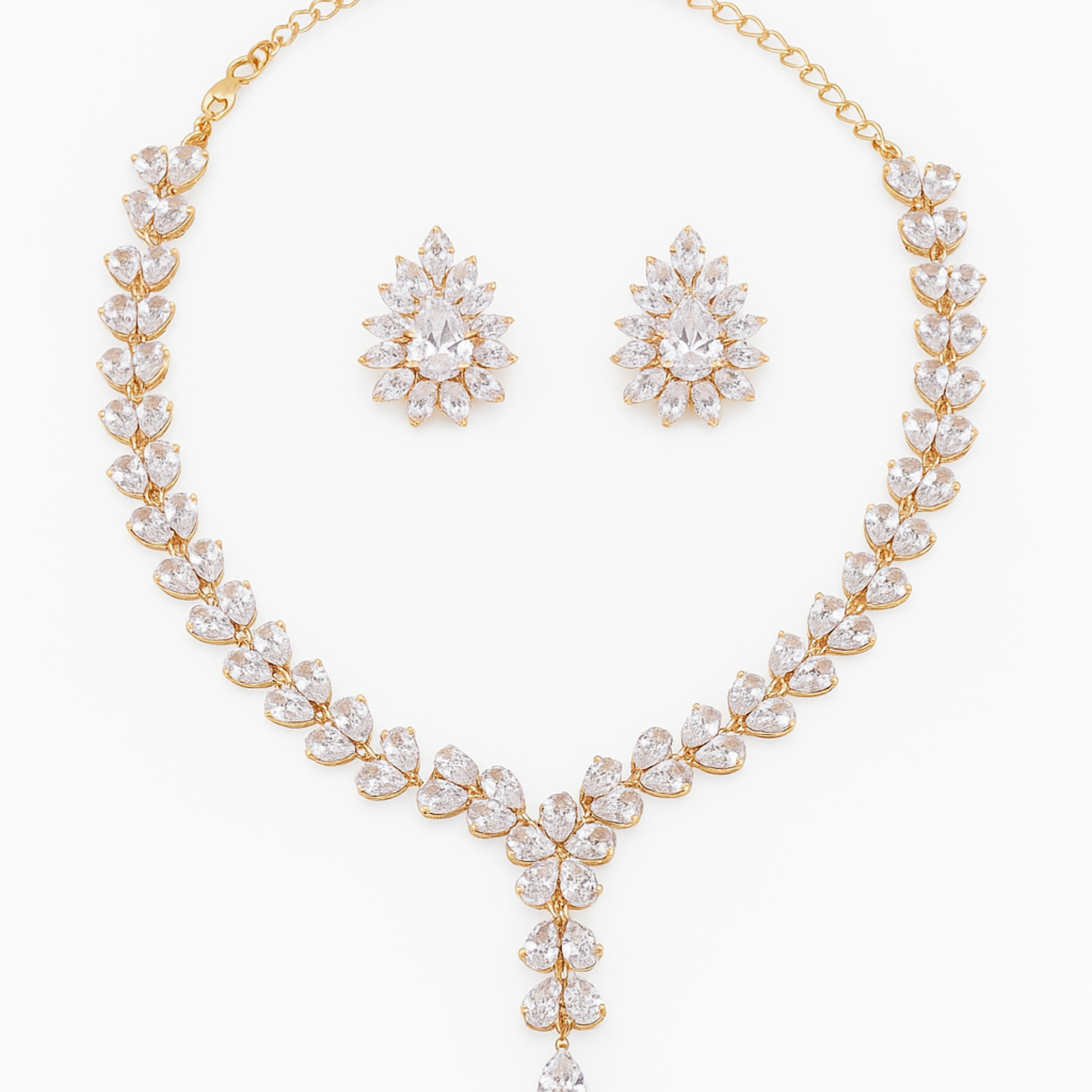 Grace your décolletage with the breathtaking brilliance of our "Crystal Cascade" Floral Y-Drop Jewelry Set. This opulent collection, featuring a magnificent necklace and coordinating stud earrings, is designed to infuse your look with unparalleled glamour and sophistication.