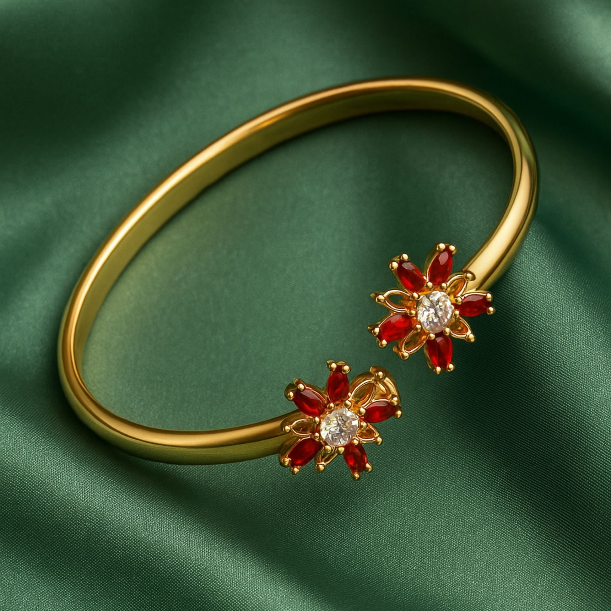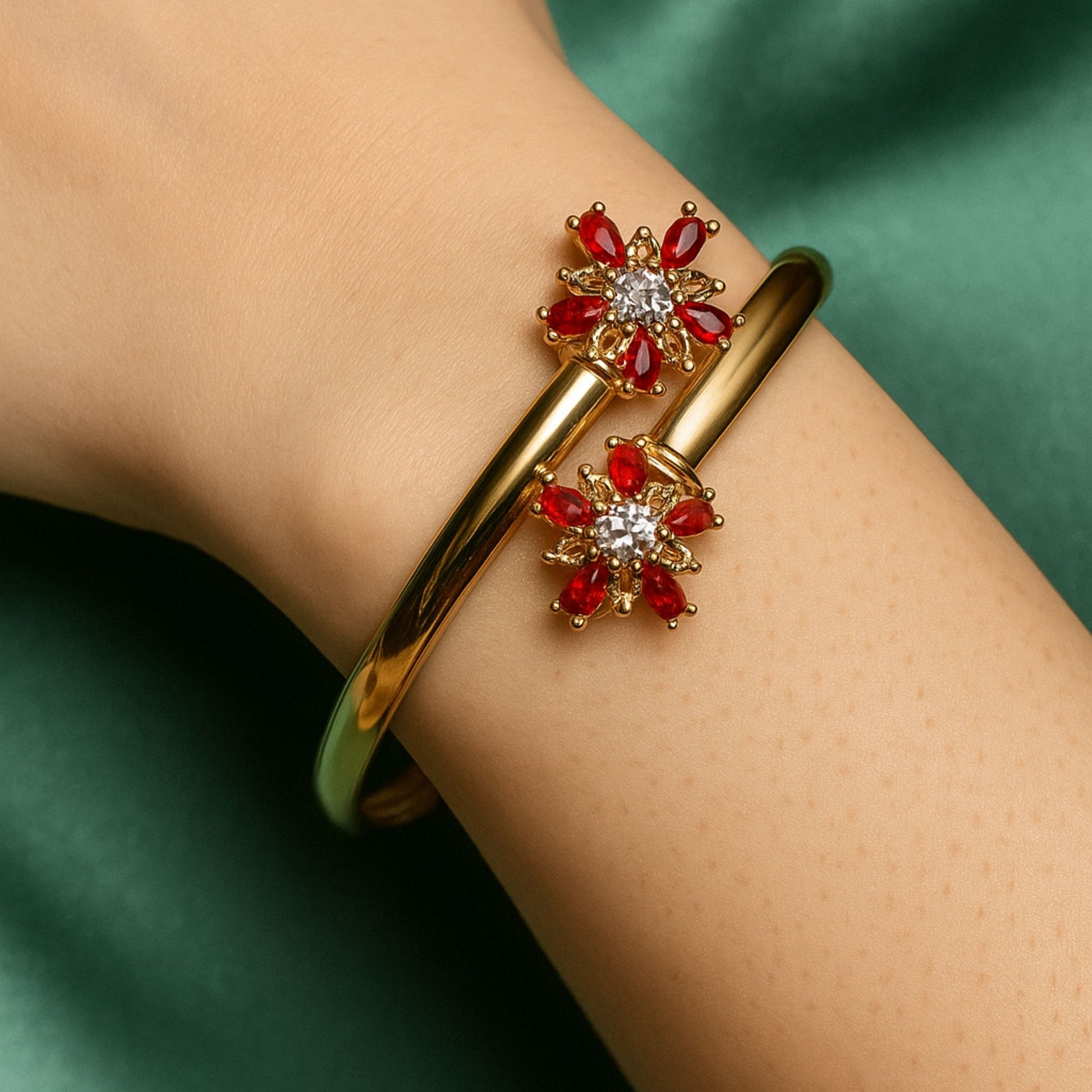 Adorn your wrist with the vibrant charm of our "Crimson Bloom" Floral Cuff Bracelet. This exquisite piece combines modern design with a touch of nature-inspired elegance, making it a stunning addition to any jewelry collection.