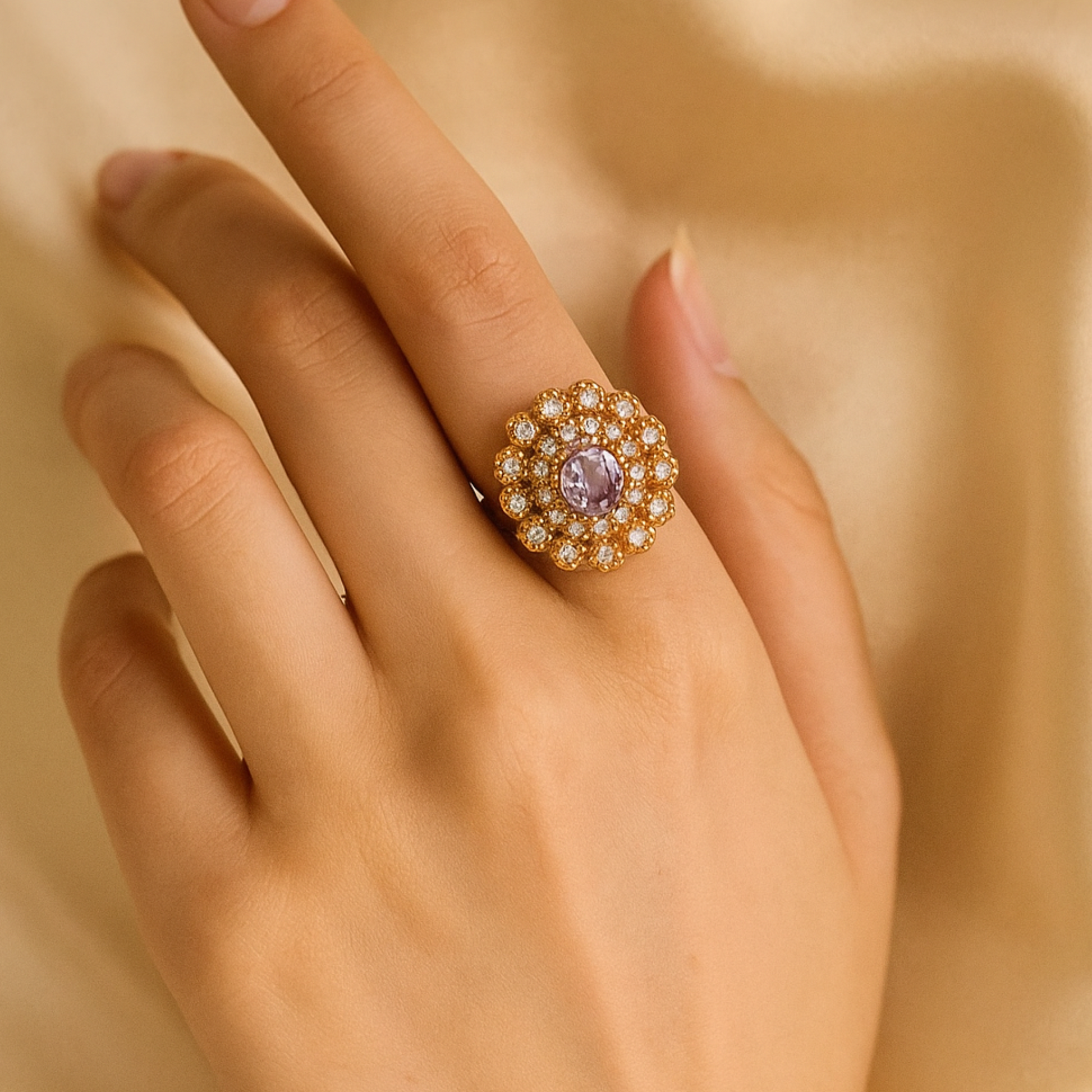 "Victorian Bloom" Amethyst Halo Ring